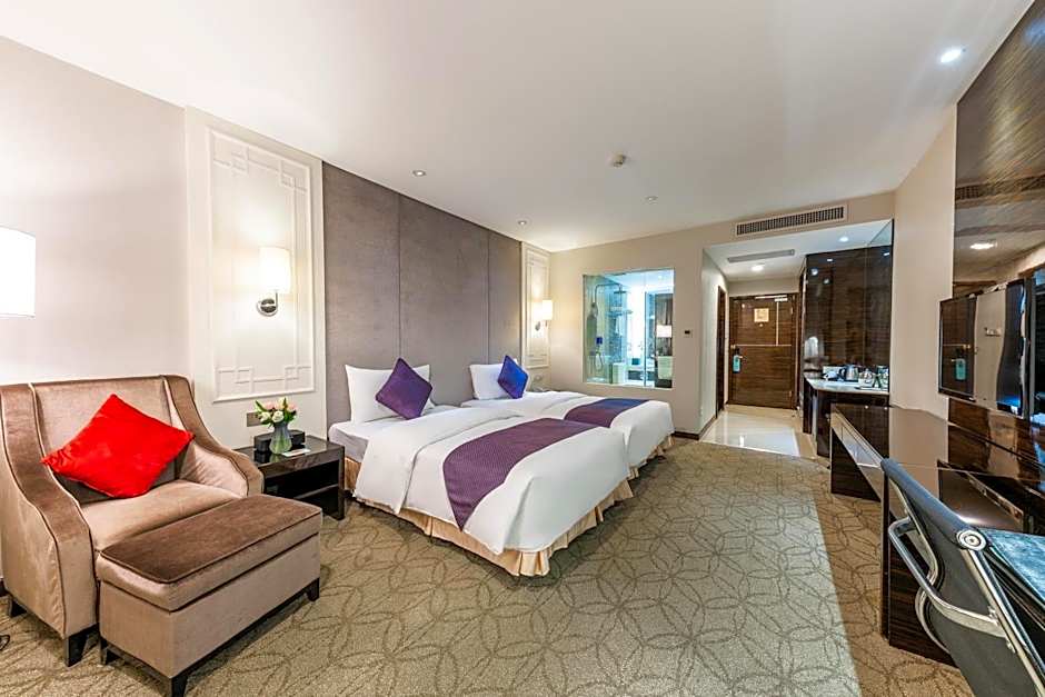 Contemporary-style room with a mini-bar, satellite TV and private bathroom with a hairdryer.